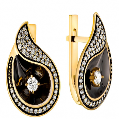 Серьги из желтого золота с бриллиантами Зс-2502 Серьги (Au 585)